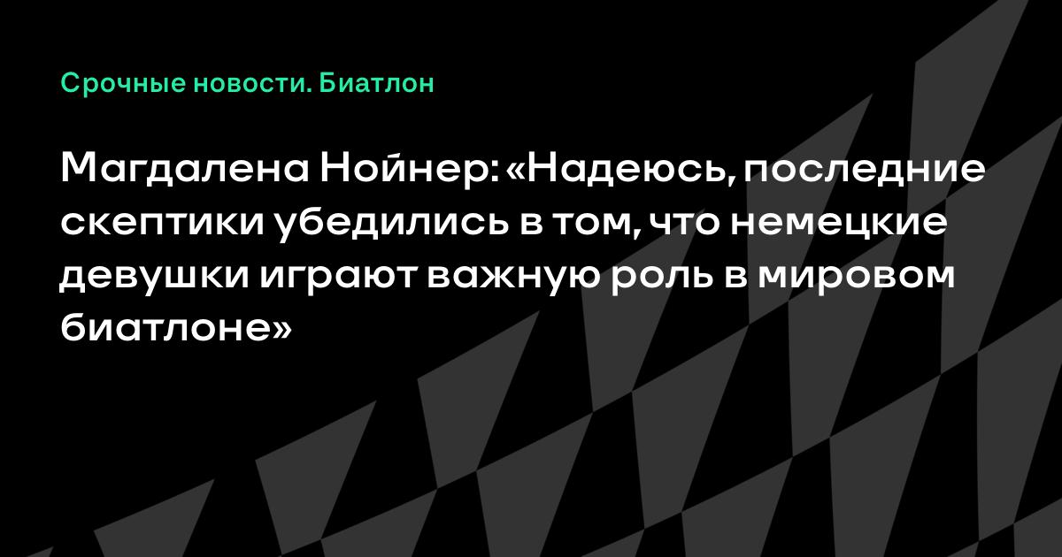 «Надеюсь, сейчас последние скептики убедились в том, что немецкие девушки продолжают играть очень важную роль в мировом биатлоне. Они показали отличный результат. Я очень рада тому, как команда развивается этой зимой», – приводит слова Нойнер Sport1.