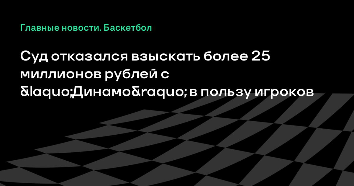 «Сергей Быков просил суд взыскать с частного учреждения «Баскетбольный клуб «Динамо-Москва» задолженность в размере около 6 миллионов рублей. Алексей Жуканенко предъявил к ответчикам иск о взыскании примерно полумиллиона рублей, Юрий Васильев – более 10 миллионов рублей, Сергей Моня – более 5 миллионов рублей, Алексей Саврасенко – примерно 3 миллиона рублей, Владимир Ивлев – менее 100 тысяч рублей. Дмитрий Домани – примерно 1,5 миллиона рублей», – уточнила представитель суда.