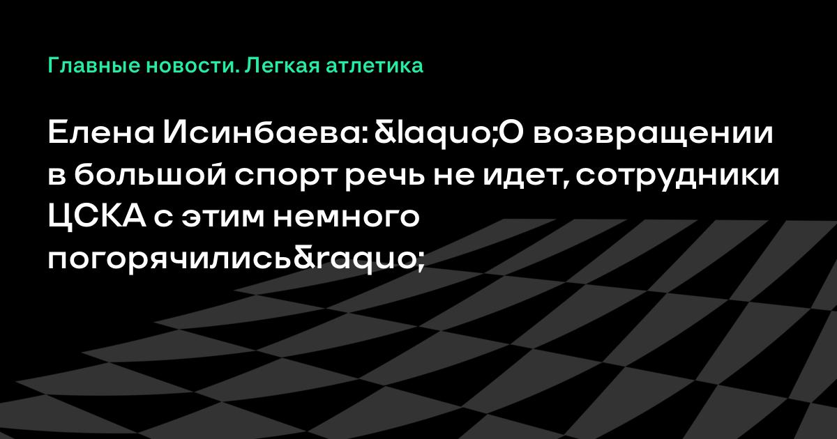 Вот когда мы с моим тренером Евгением Васильевичем Трефиловым решим, что будем готовиться к каким-то стартам, я об этом сообщу. Но это будет не сегодня и не 12 февраля. Сейчас я знаю только, что возвращаюсь в ЦСКА. Даже должность мы толком не обсуждали. Старший тренер или спортсмен-инструктор – не знаю сама», – рассказала Исинбаева в интервью агентству «Весь спорт».