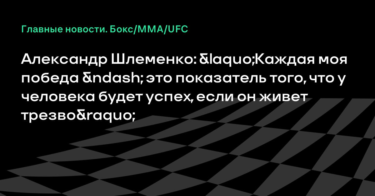 «Я, конечно, очень рад, что выиграл. Понимаете, я дерусь, чтобы мотивировать других людей. Многие люди воспринимают мои победы как свои – и мои поражения тоже как свои. И каждая моя победа – это показатель того, что у человека будет успех, если он живет трезво», – сказал Шлеменко.