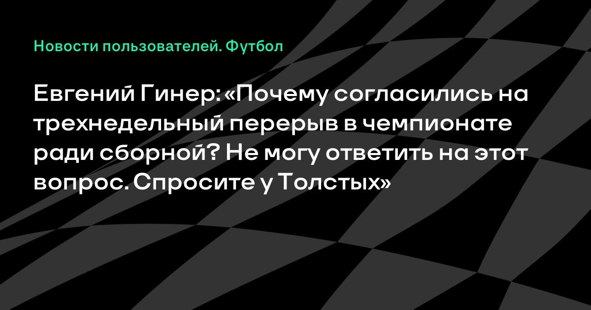 Евгений Гинер: «Почему согласились на трехнедельный перерыв в чемпионате ради сборной? Не могу ответить на этот вопрос. Спросите у Толстых»