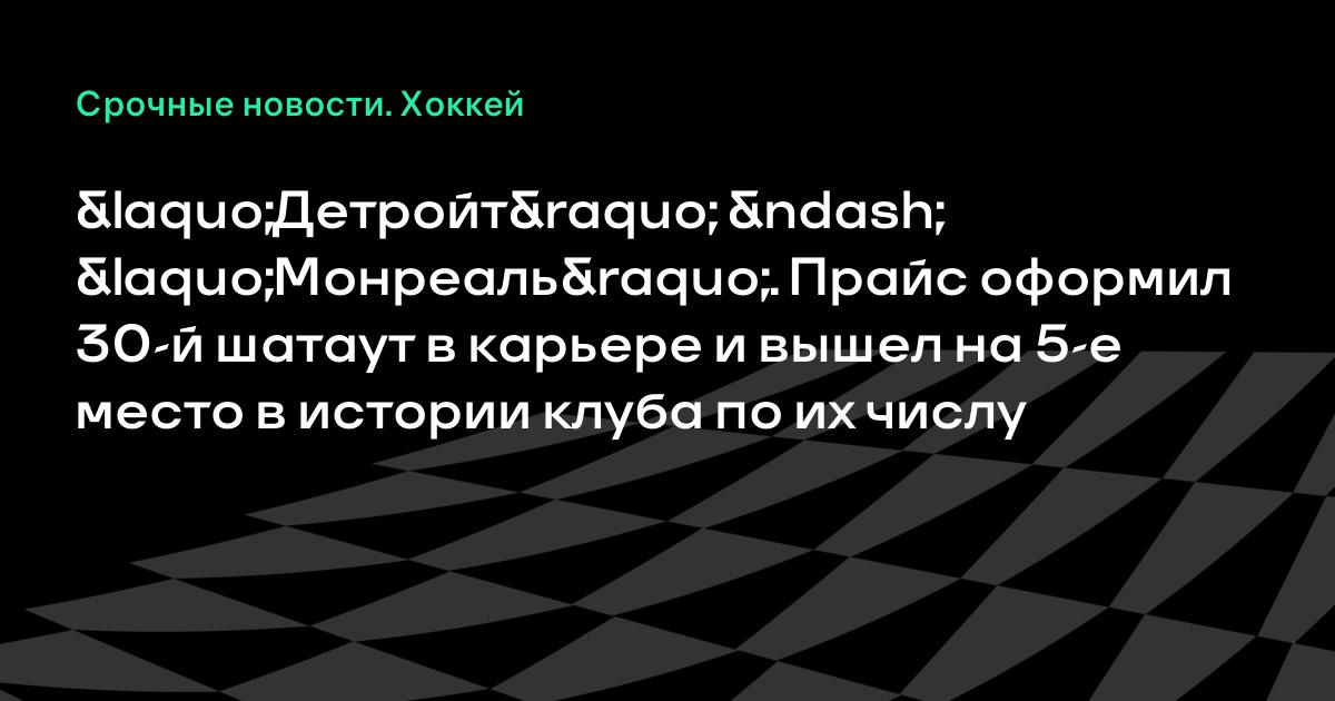 «Детройт» – «Монреаль». Прайс оформил 30-й шатаут в карьере и вышел на 5-е место в истории клуба по их числу