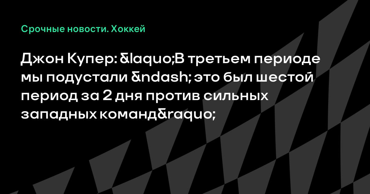 – Да, это так. Нам приходилось непросто. Это был шестой период за два дня, в которые мы играли с сильными западными командами. Тем не менее, мы рассчитывали набрать очки, хоть это и было сложно, – сказал Купер.