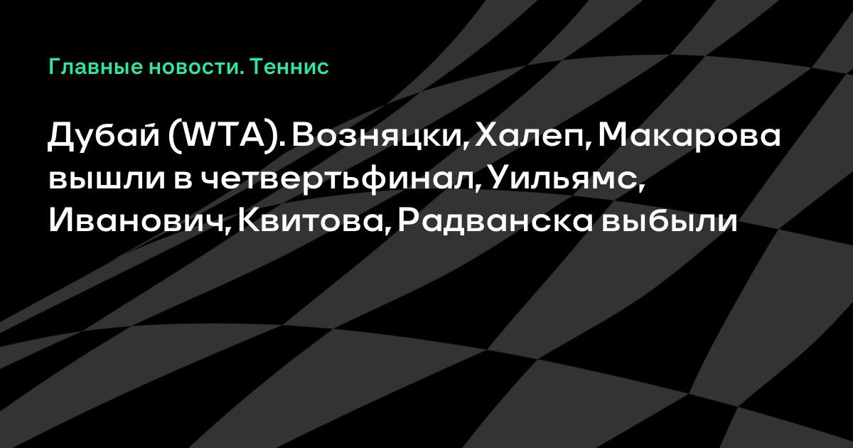 Дубай (WTA). Возняцки, Халеп, Макарова вышли в четвертьфинал, Уильямс, Иванович, Квитова, Радванска выбыли