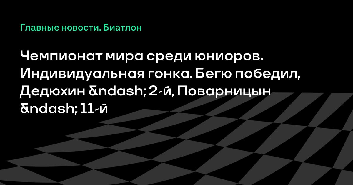 Чемпионат мира среди юниоров. Индивидуальная гонка. Бегю победил, Дедюхин – 2-й, Поварницын – 11-й