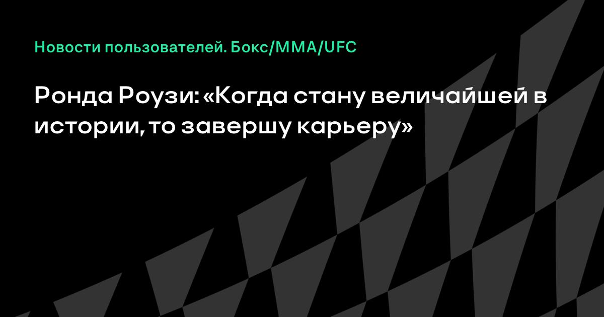 Ронда Роузи: «Когда стану величайшей в истории, то завершу карьеру»