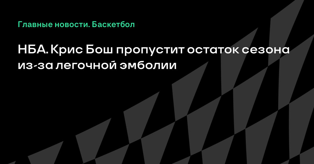 Форвард «Майами» Крис Бош пропустит остаток сезона-2014/15 из-за легочной эмболии, информирует обозреватель официального сайта НБА Дэвид Олдридж.
