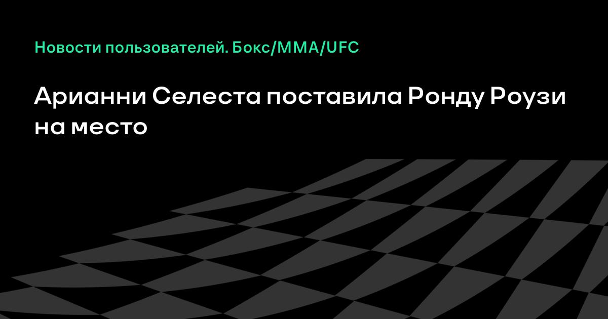 Арианни Селеста ответила на претензии чемпионки UFC в легчайшем весе Ронды Роузи. Напомним, Ронда высказалась в не особо мягкой форме о том, что бойцы UFC зарабатывают меньше девушек, выносящих таблички, особенно таких, как Бритни Палмер и Арианни Селеста. По её мнению, такого в UFC быть просто не должно.