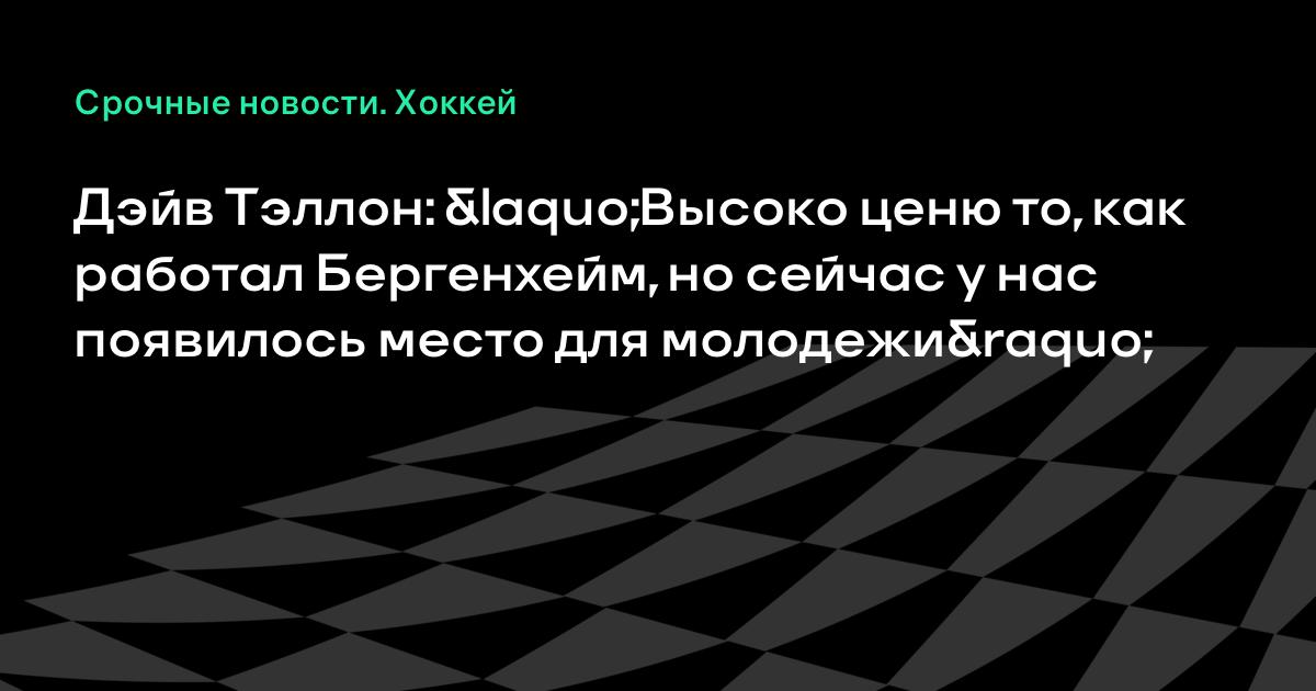 Дэйв Тэллон: «Высоко ценю то, как работал Бергенхейм, но сейчас у нас появилось место для молодежи»