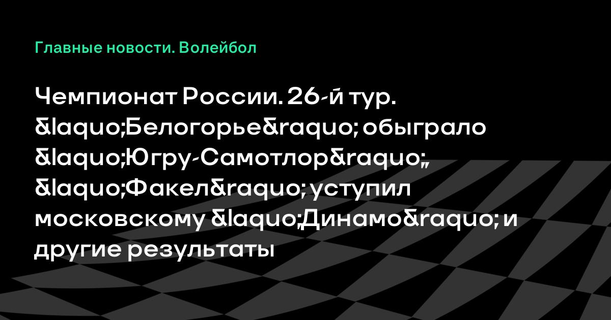 Чемпионат России. 26-й тур. «Белогорье» обыграло «Югру-Самотлор», «Факел» уступил московскому «Динамо» и другие результаты