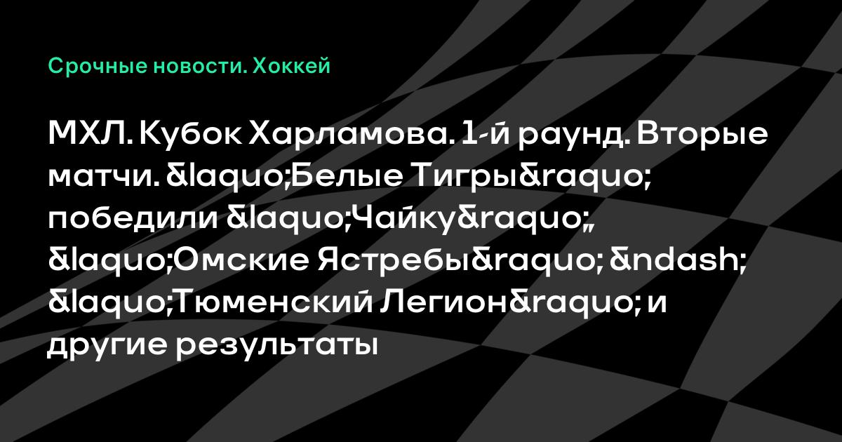 МХЛ. Кубок Харламова. 1-й раунд. Вторые матчи. «Белые Тигры» победили «Чайку», «Омские Ястребы» – «Тюменский Легион» и другие результаты