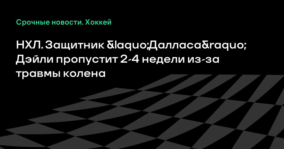 Защитник «Далласа» Тревор Дэйли пропустит 2-4 недели из-за травмы колена.Дэйли получил повреждение в столкновении с форвардом «Айлендерс» Мэттом Мартином, который дисквалифицирован на 1 матч.