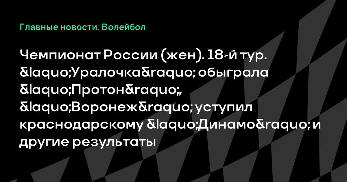 Сегодня прошли матчи 18-го тура женского чемпионата России по волейболу. «Уралочка» обыграла «Протон» (3:0), «Воронеж» уступил краснодарскому «Динамо» (1:3).