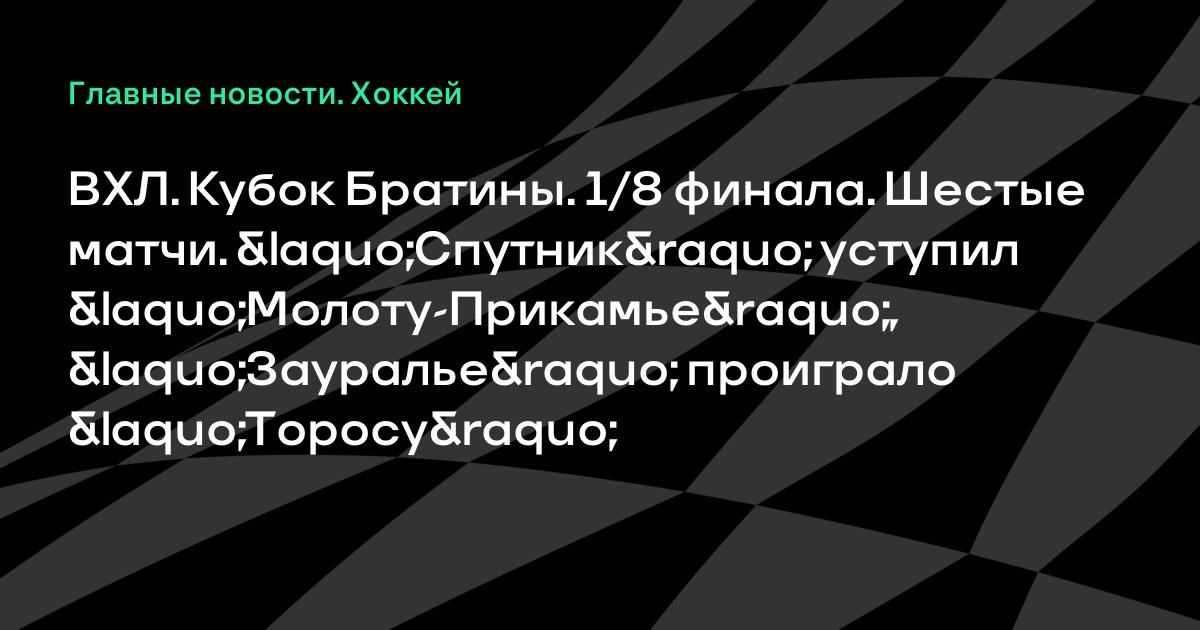 ВХЛ. Кубок Братины. 1/8 финала. Шестые матчи. «Спутник» уступил «Молоту-Прикамье», «Зауралье» проиграло «Торосу»