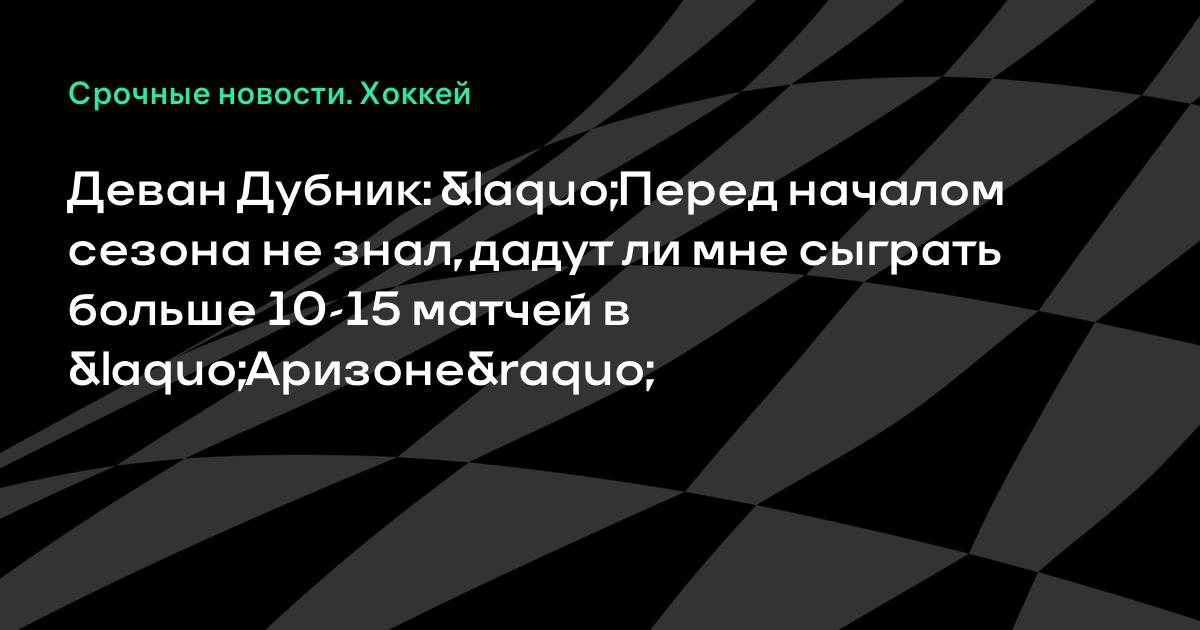 Деван Дубник: «Перед началом сезона не знал, дадут ли мне сыграть больше 10-15 матчей в «Аризоне»
