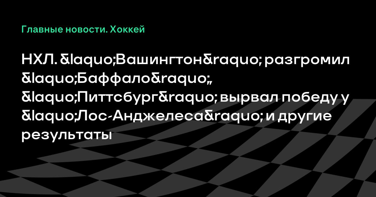 НХЛ. «Вашингтон» разгромил «Баффало», «Питтсбург» вырвал победу у «Лос-Анджелеса» и другие результаты