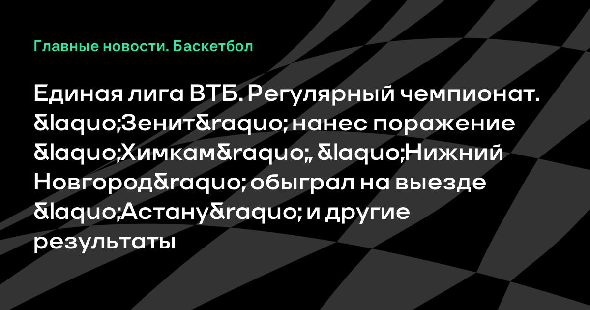 Единая лига ВТБ. Регулярный чемпионат. «Зенит» нанес поражение «Химкам», «Нижний Новгород» обыграл на выезде «Астану» и другие результаты