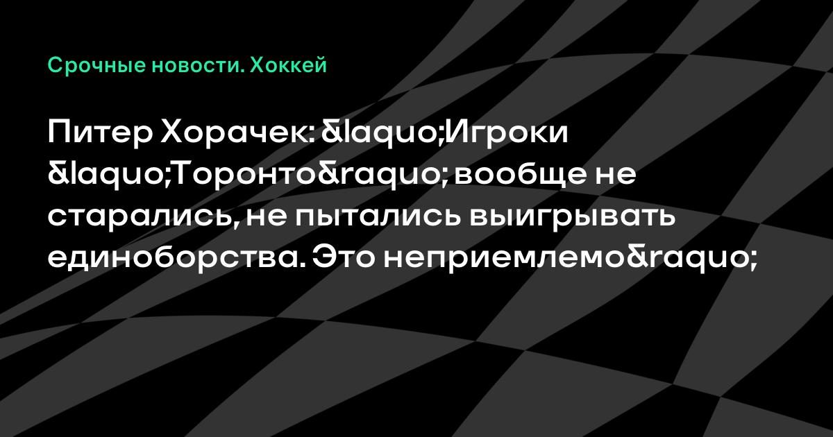 Главный тренер «Торонто» Питер Хорачек остался недоволен усилиями команды в матче с «Сент-Луисом» (1:6).– Мне кажется, мы вообще не старались, не пытались выигрывать единоборства, не выкладывались достаточно, не прессинговали, не удерживали шайбу в зоне атаки.