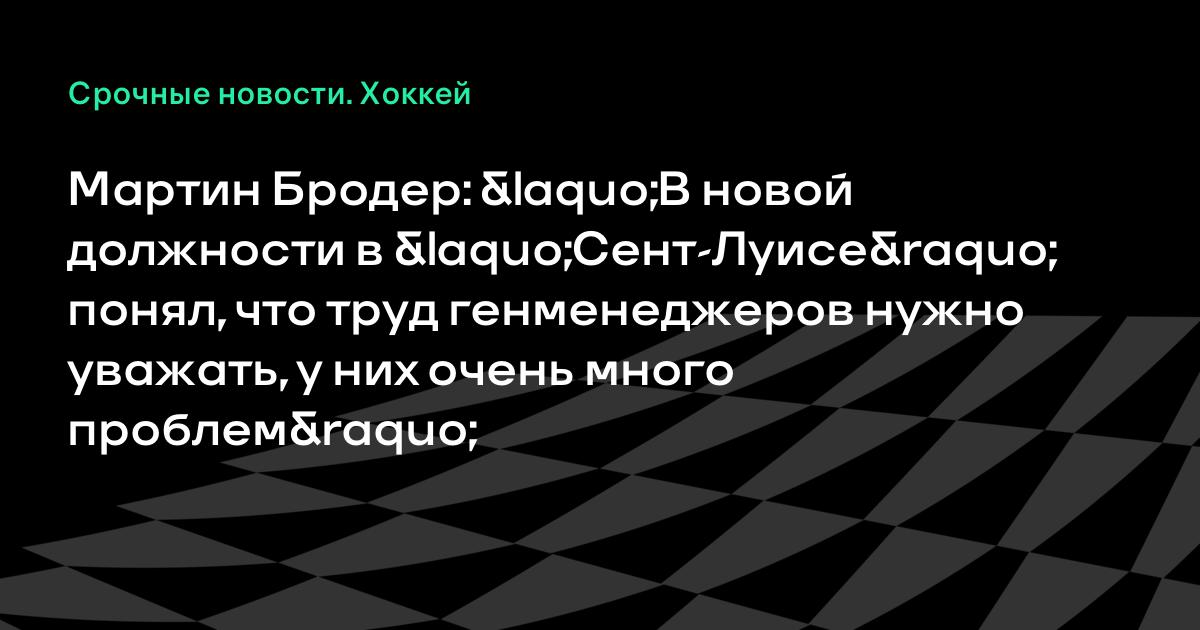 Советник генменеджера «Сент-Луиса», в прошлом легендарный вратарь Мартин Бродер рассказал о своей адаптации в новой роли.