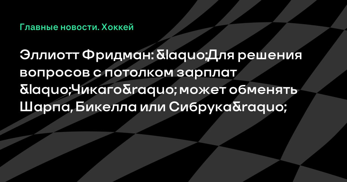 Эллиотт Фридман: «Для решения вопросов с потолком зарплат «Чикаго» может обменять Шарпа, Бикелла или Сибрука»
