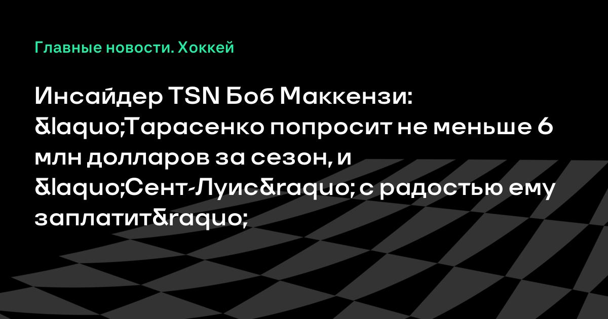 Инсайдер TSN Боб Маккензи: «Тарасенко попросит не меньше 6 млн долларов за сезон, и «Сент-Луис» с радостью ему заплатит»
