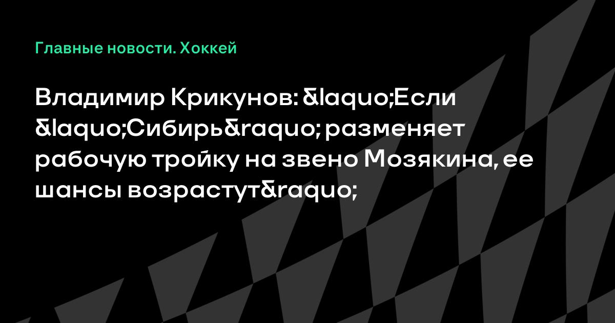 Владимир Крикунов: «Если «Сибирь» разменяет рабочую тройку на звено Мозякина, ее шансы возрастут»