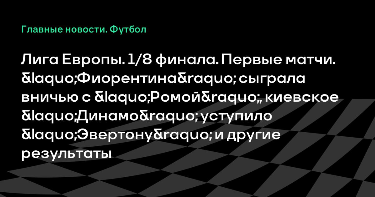 Лига Европы. 1/8 финала. Первые матчи. «Фиорентина» сыграла вничью с «Ромой», киевское «Динамо» уступило «Эвертону» и другие результаты