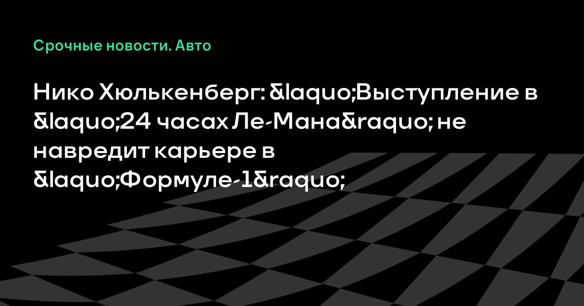 Нико Хюлькенберг: «Выступление в «24 часах Ле-Мана» не навредит карьере в «Формуле-1»
