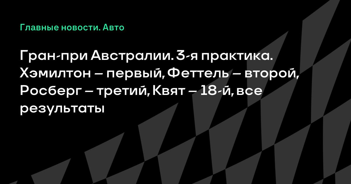 Гран-при Австралии. 3-я практика. Хэмилтон – первый, Феттель – второй, Росберг – третий, Квят – 18-й, все результаты