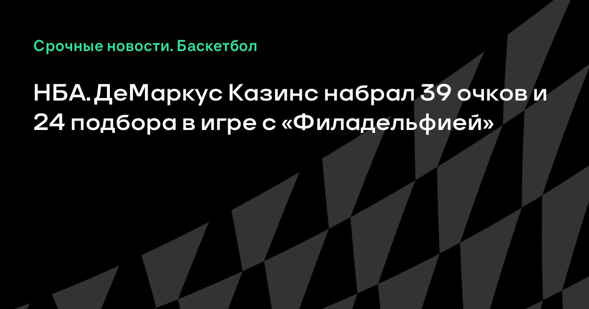 Центровой «Сакраменто» ДеМаркус Казинс набрал 39 очков и 24 подбора в игре с «Филадельфией» (107:114), сообщает ESPN.com.
