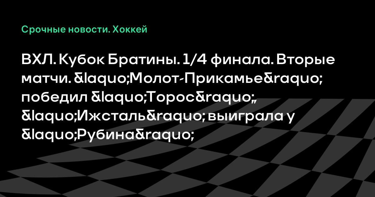 ВХЛ. Кубок Братины. 1/4 финала. Вторые матчи. «Молот-Прикамье» победил «Торос», «Ижсталь» выиграла у «Рубина»