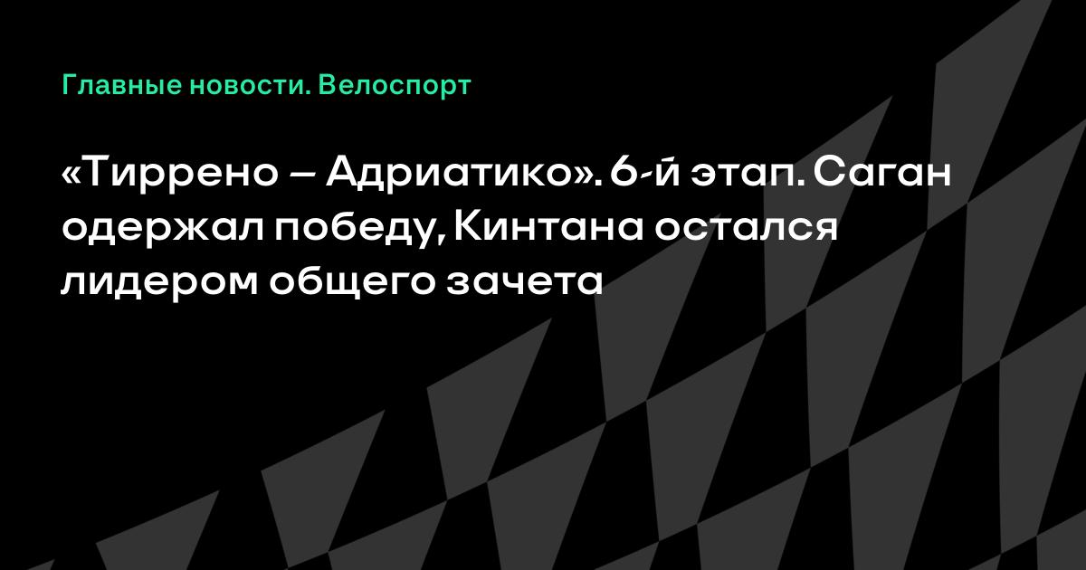 «Тиррено – Адриатико». 6-й этап. Саган одержал победу, Кинтана остался лидером общего зачета