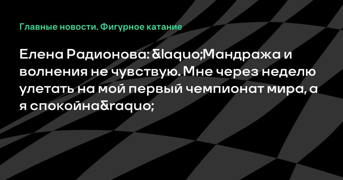 Российская фигуристка Елена Радионова сообщила, что не волнуется перед дебютным для себя чемпионатом мира.