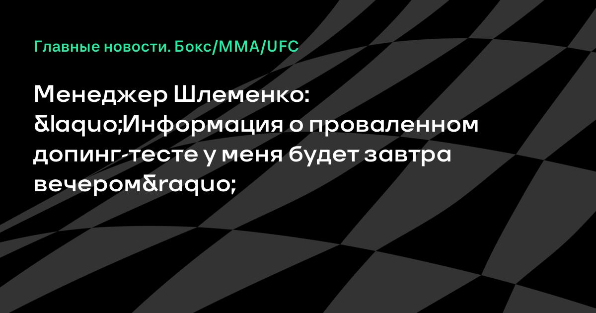 Алексей Жернаков, менеджер Александра Шлеменко, заявил, что только завтра сможет прокомментировать новость о проваленном российским бойцом допинг-тесте и сообщить детали.