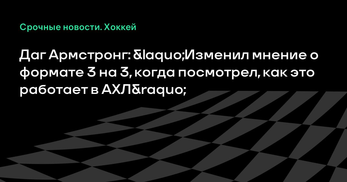 Даг Армстронг: «Изменил мнение о формате 3 на 3, когда посмотрел, как это работает в АХЛ»