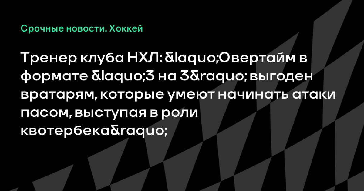Тренер клуба НХЛ: «Овертайм в формате «3 на 3» выгоден вратарям, которые умеют начинать атаки пасом, выступая в роли квотербека»