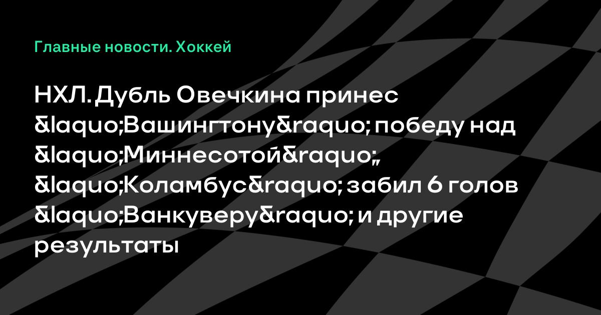 НХЛ. Дубль Овечкина принес «Вашингтону» победу над «Миннесотой», «Коламбус» забил 6 голов «Ванкуверу» и другие результаты