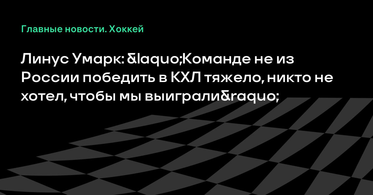 Линус Умарк: «Команде не из России победить в КХЛ тяжело, никто не хотел, чтобы мы выиграли»