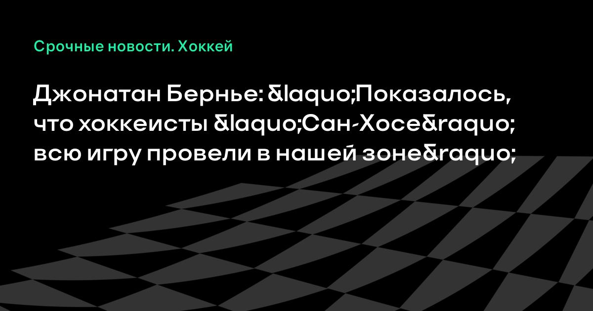 Джонатан Бернье: «Показалось, что хоккеисты «Сан-Хосе» всю игру провели в нашей зоне»