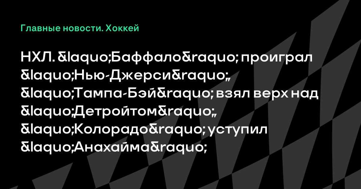 НХЛ. «Баффало» проиграл «Нью-Джерси», «Тампа-Бэй» взял верх над «Детройтом», «Колорадо» уступил «Анахайма»