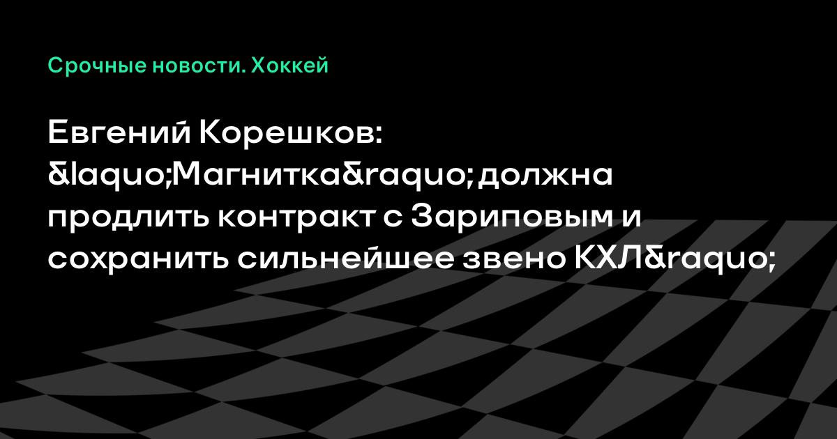 Евгений Корешков: «Магнитка» должна продлить контракт с Зариповым и сохранить сильнейшее звено КХЛ»
