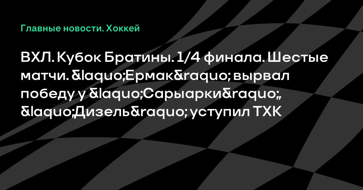 ВХЛ. Кубок Братины. 1/4 финала. Шестые матчи. «Ермак» вырвал победу у «Сарыарки», «Дизель» уступил ТХК