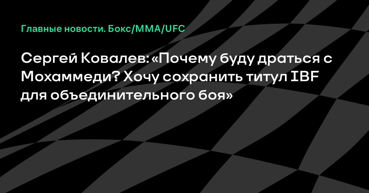 Сергей Ковалев: «Почему буду драться с Мохаммеди? Хочу сохранить титул IBF для объединительного боя»