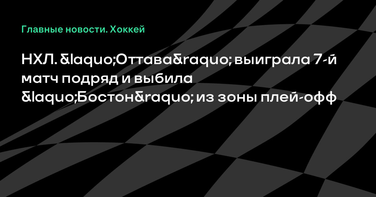 НХЛ. «Оттава» выиграла 7-й матч подряд и выбила «Бостон» из зоны плей-офф