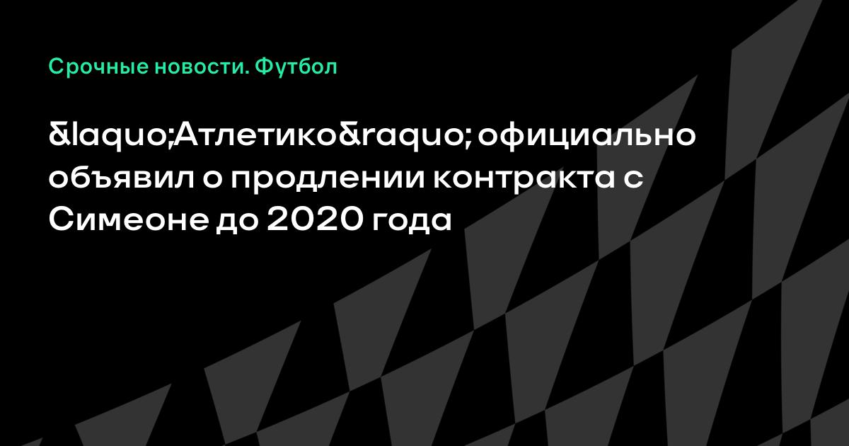 Главный тренер «Атлетико» Диего Симеоне продлил контракт с клубом, сообщает официальный сайт клуба.