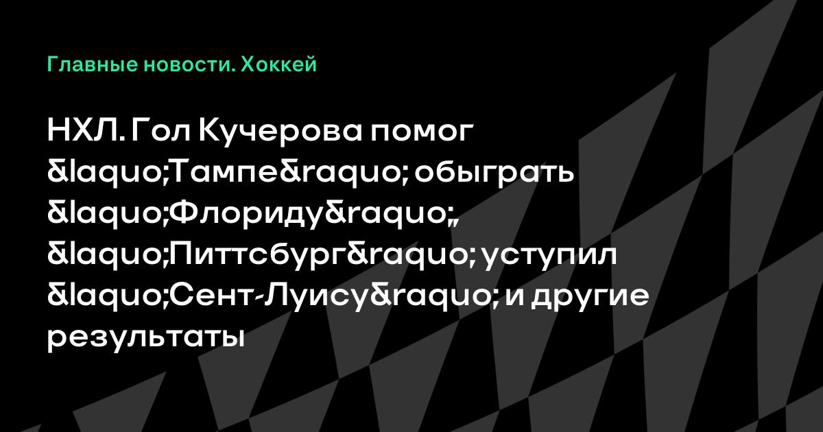 НХЛ. Гол Кучерова помог «Тампе» обыграть «Флориду», «Питтсбург» уступил «Сент-Луису» и другие результаты