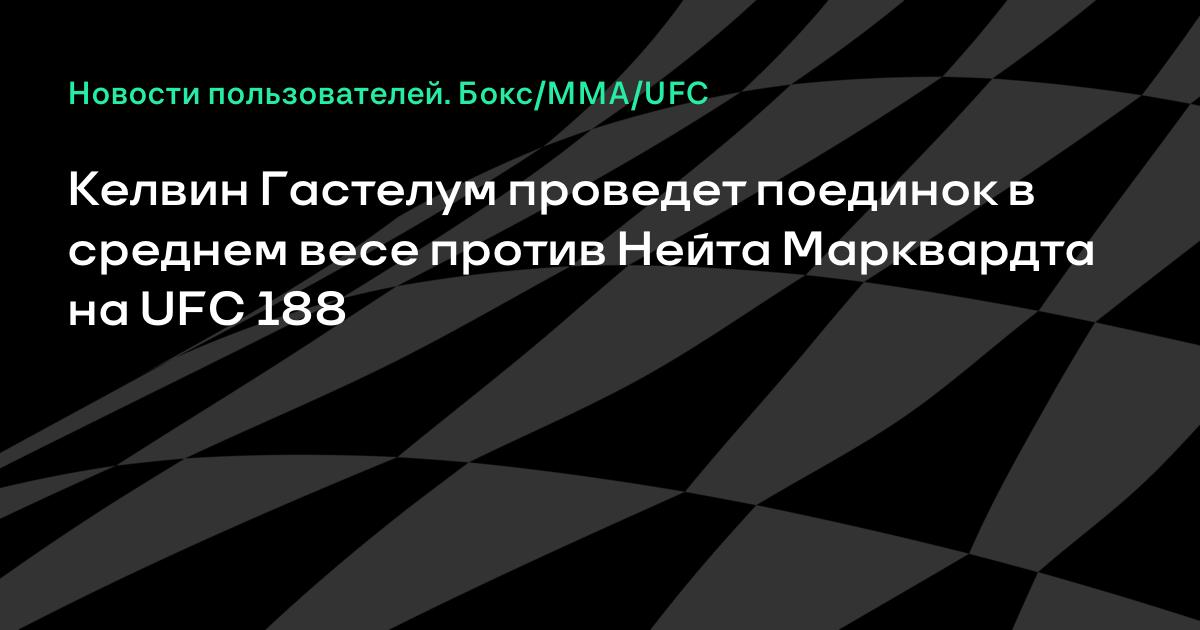 Только что, руководство UFC официально сообщило о том, что Келвин Гастелум (10–1 MMA, 5–1 UFC) и Нейт Марквардт (33–14–2 MMA, 11–7 UFC) померятся силами на турнире UFC 188, 13 июня, в Мехико, в рамках среднего веса.