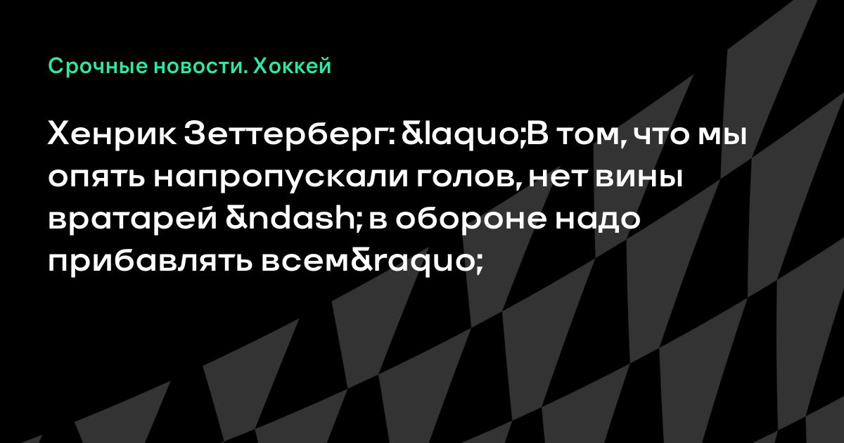 Хенрик Зеттерберг: «В том, что мы опять напропускали голов, нет вины вратарей – в обороне надо прибавлять всем»