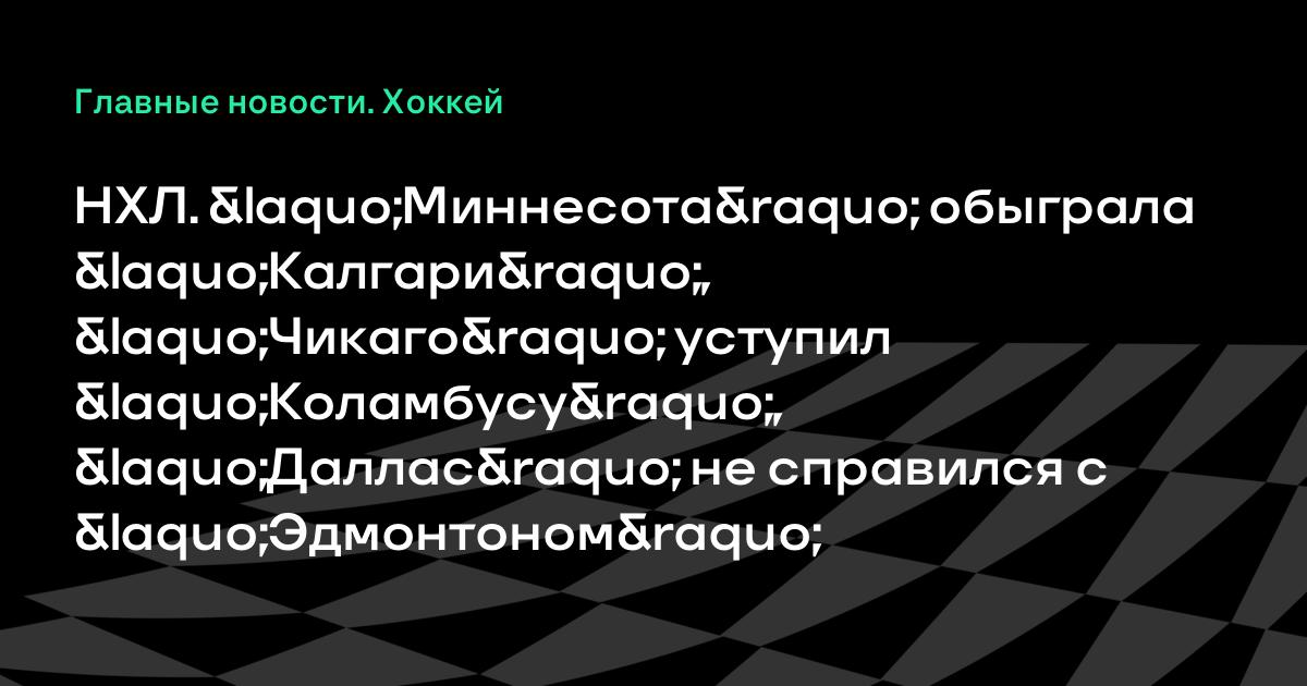 НХЛ. «Миннесота» обыграла «Калгари», «Чикаго» уступил «Коламбусу», «Даллас» не справился с «Эдмонтоном»