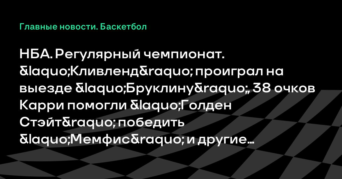 НБА. Регулярный чемпионат. «Кливленд» проиграл на выезде «Бруклину», 38 очков Карри помогли «Голден Стэйт» победить «Мемфис» и другие результаты